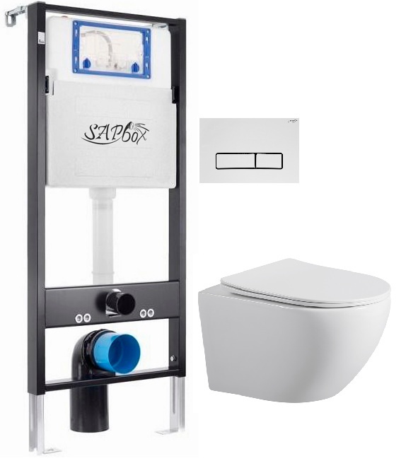 Комплект унитаз подвесной безободковый с инсталляцией и кнопкой смыва SET.SBOX7262W.0510 белый глянцевый