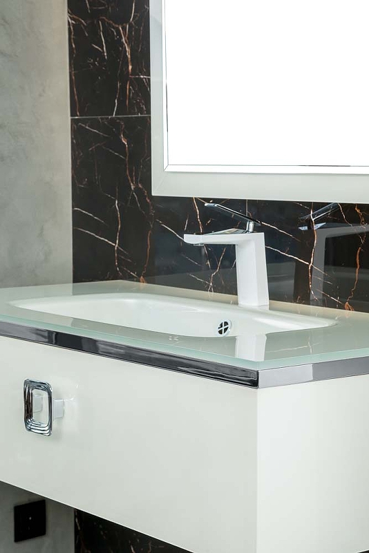 ArmadiArt представляет коллекцию «Lucido», что в переводе с итальянского, означает «блеск». Действительно, благодаря ультрапрозрачному стеклу и фееричным цветам этой коллекции блеска не занимать. Элегантные ножки из нержавеющей стали добавляют тумбам Lucido лёгкости и «воздушности». Декоративные элементы, выполненные в хроме и золоте, деликатны и ненавязчивы. Эксклюзивные ручки, произведенные итальянскими мастерами, сдержаны и элегантны. Выдвижные ящики практичны и обладают хорошей ёмкостью. Топовая фурнитура с плавным закрытием от Hettich. Ну и конечно, фирменная отделка дна ящиков и пенала экокожей. Клиент может выбрать как раковины-моноблок, так и столешницы с эксклюзивными накладными чашами. Зеркала Lucido, как и тумбы, выполнены из хрустального стекла и выкрашены в цвета тумб и пеналов. Все зеркала оснащены подсветкой. Широкий размерный ряд- от 80см до 160см.