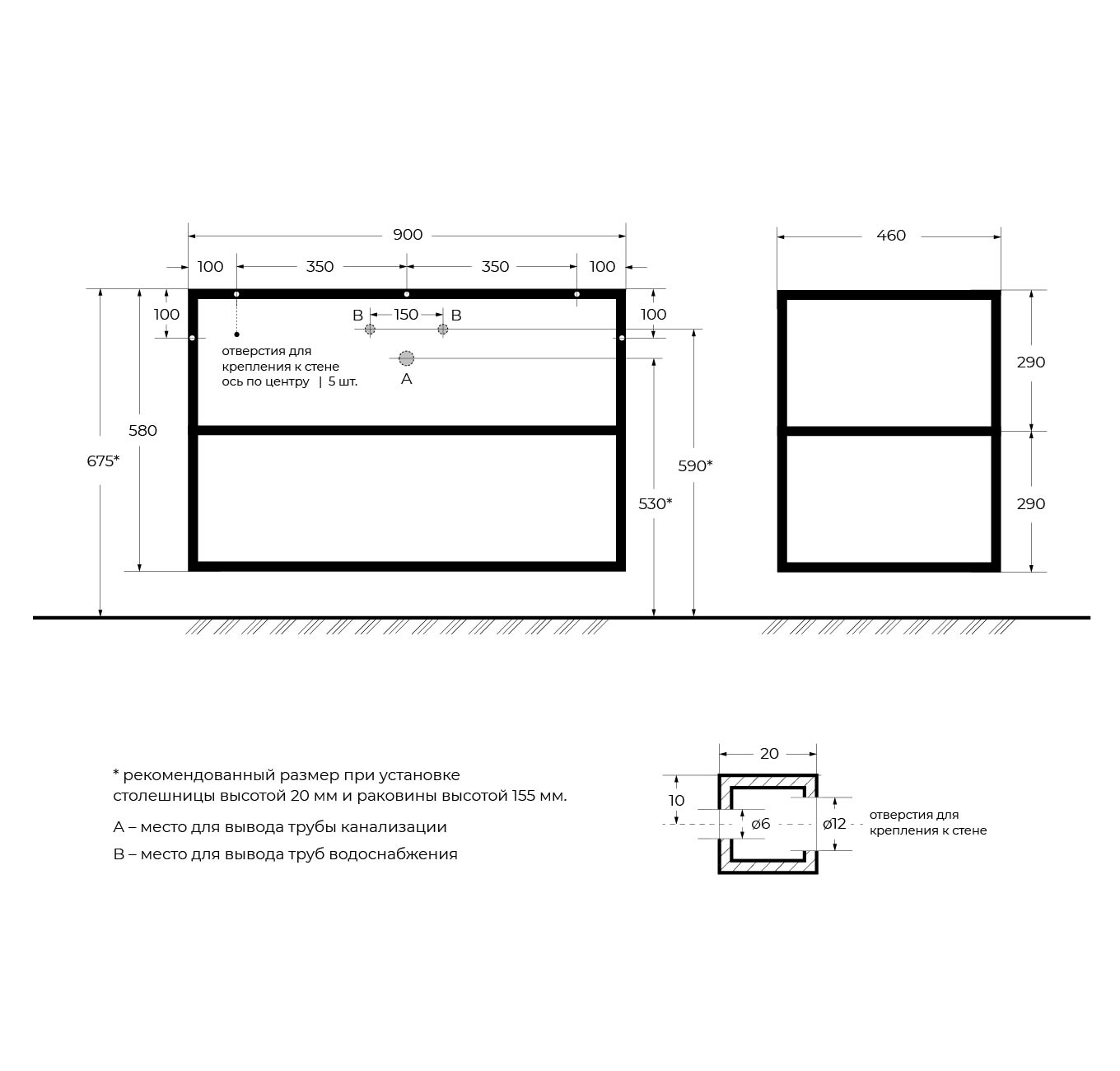 Консоль под раковину Cezares Cadro 90 см подвесная
