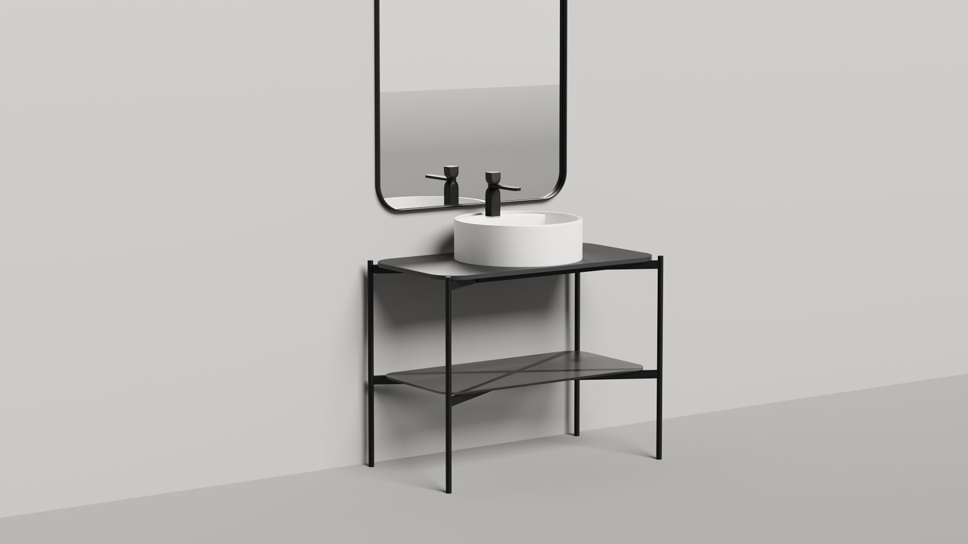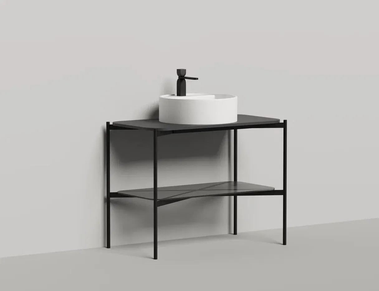 Напольная тумба со столешницей Salini Grazia 80x74 стальная черная с зеркалом 27G108. Grazia Консоль, предназначенная для установки накладных раковин из ассортимента Salini, изготовлена из металла, выполнена в благородном матовом черном цвете. Столешница из минерального камня S-Stone проста в уходе и не подвержена воздействию влаги. Она может быть выполнена в любом цвете палитры RAL Classic. Консоль снабжена удобной полкой из тонированного закаленного стекла. . Консоль со столешницей S-Stone; полка из тонированного закаленного стекла; зеркало в металлической раме; инструкция по монтажу; металлический сифон; паспорт изделия