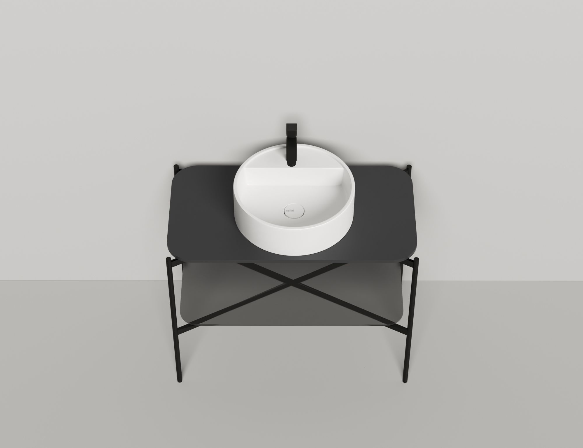 Grazia Консоль, предназначенная для установки накладных раковин из ассортимента Salini, изготовлена из металла, выполнена в благородном матовом черном цвете. Столешница из минерального камня S-Stone проста в уходе и не подвержена воздействию влаги. Она может быть выполнена в любом цвете палитры RAL Classic. Консоль снабжена удобной полкой из тонированного закаленного стекла.