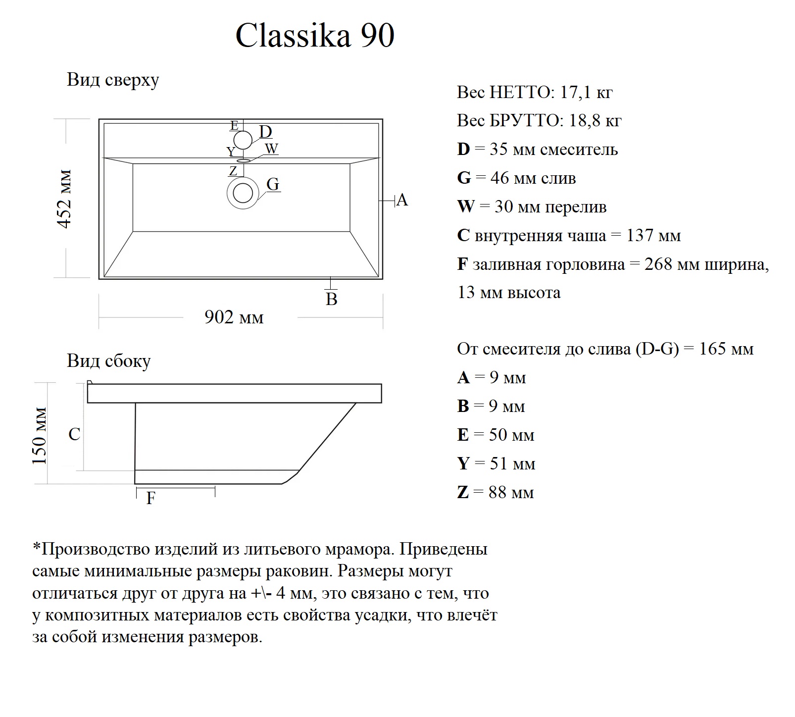 Универсальность и ядро ассортимента: Благодаря разнообразию размеров, типоисполнений (стандарт/Slim) и вариантов отделки (глянец/мат), серия Classica служит универсальным и основным предложением бренда, покрывающим большинство потребностей в мебельных раковинах классического дизайна.