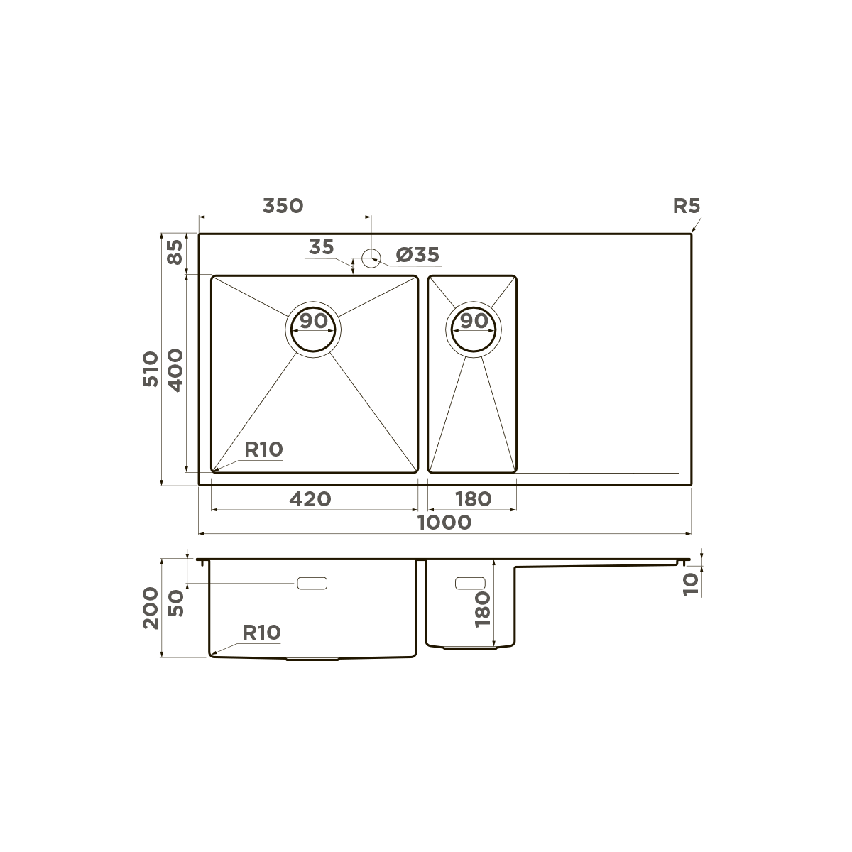 | Толщина материала мойки, мм | 1.2 |