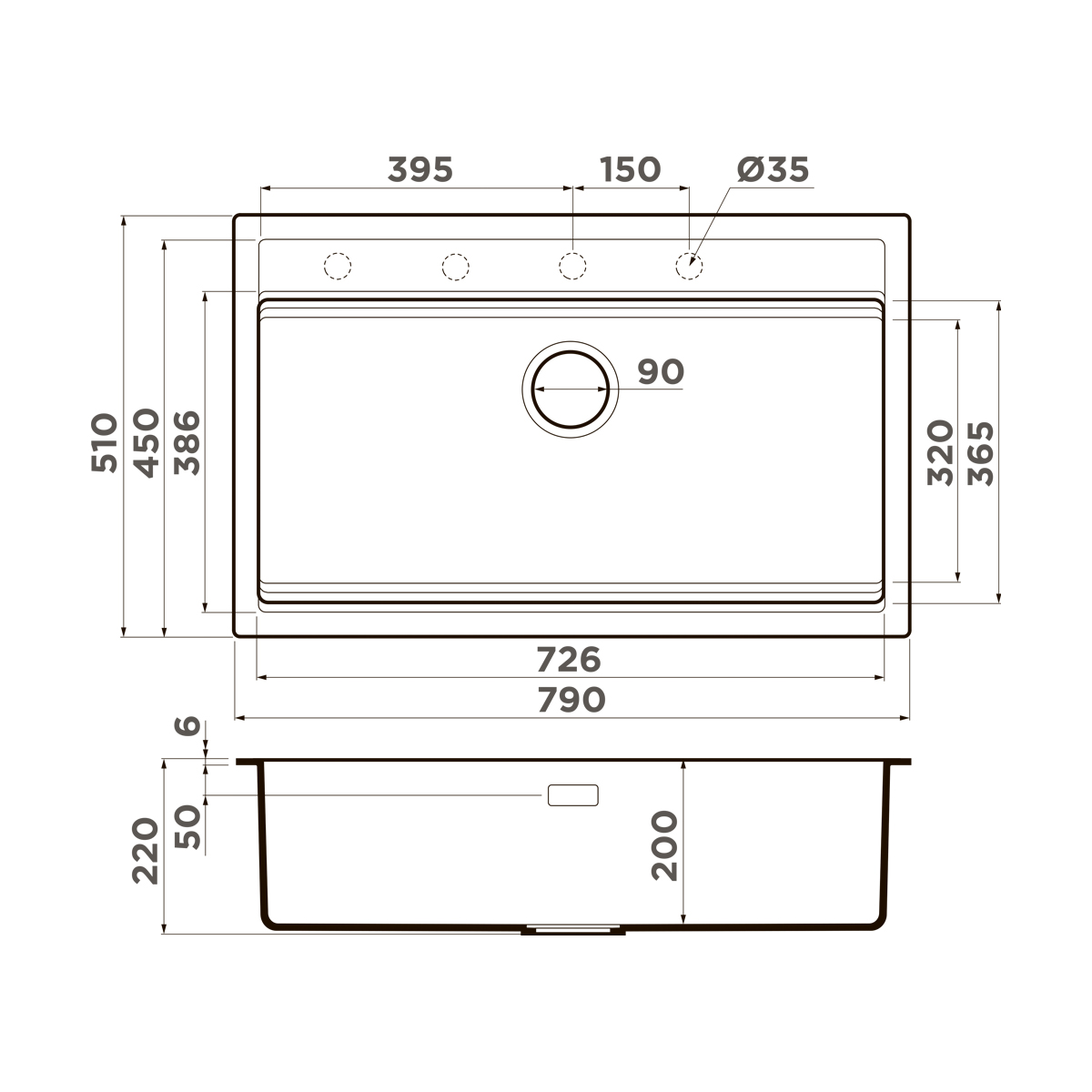 • Помимо гранита, в состав материала входит молотый кварц мельчайших размеров, которому характерны непревзойденная прочность и устойчивость к природным и химическим воздействиям. Свойства данного компонента вместе с долговечностью гранита обеспечивают мойке прочность и делают её устойчивой к любым механическим повреждениям: деформациям, сколам;