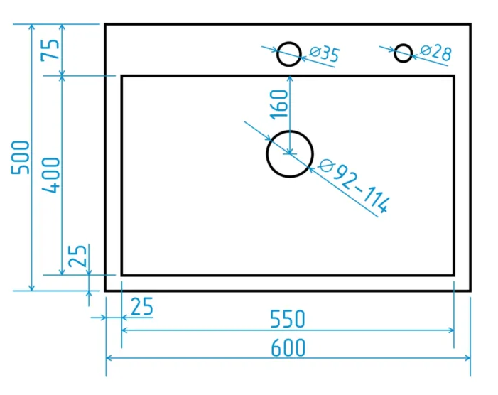 Размеры: 600 × 500 мм — подходит для тумбы от 60 см, обеспечивает максимум рабочей поверхности