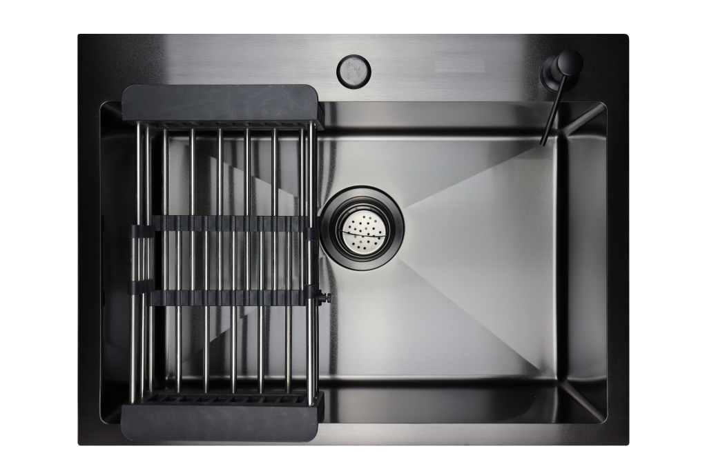 Мойка из нержавеющей стали премиум класса Santegro STR6050BL — прямоугольная, 60×50 см, с сифоном, цвет графит