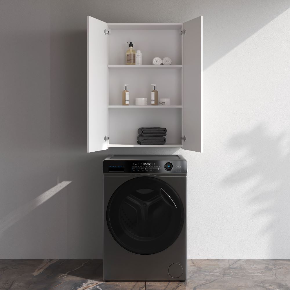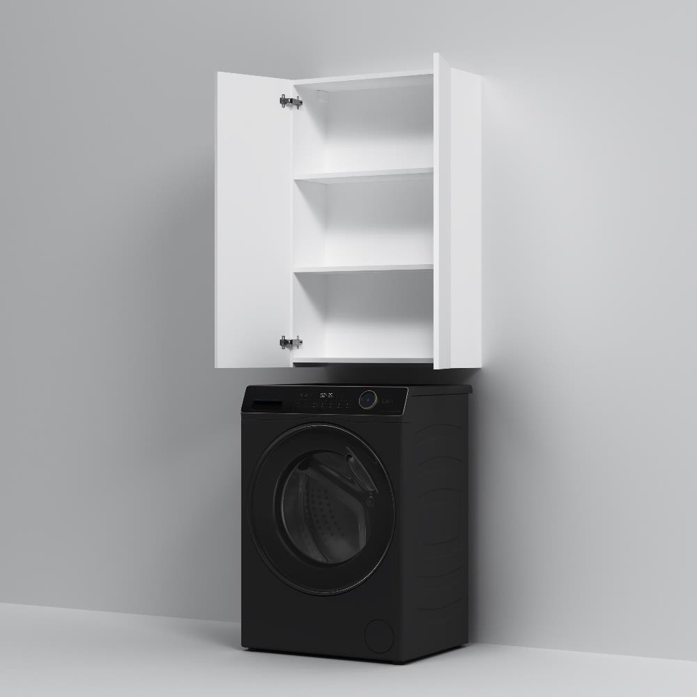 Вместительный распашной шкаф поможет эргономично обустроить зону хранения и сэкономить место. Навесной монтаж - подходит для установки над стиральной машиной. Открытая ниша - организация хранения бытовой химии полотенец и аксессуаров первой необходимости в быстром доступе. Петли с доводчиками - обеспечивают мягкое и бесшумное закрывание.