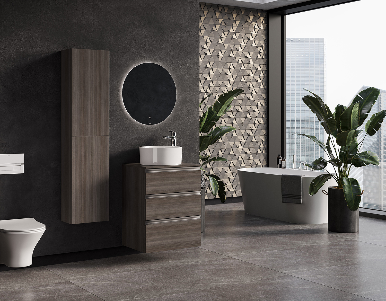 Шкаф-колонна THE GAP в древесном декоре обладает универсальным современным дизайном и функциональностью. Корпус и фасад-створка выполнены из влагостойкой ЛДСП в темном древесном текстурированном декоре. Открывание створок в одно касание, за фасадами-створками скрываются регулируемые полочки из влагостойкой ЛДСП.