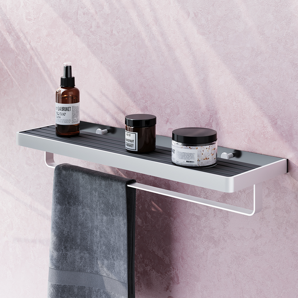 Полка для полотенец Damixa Jupiter выделяется изысканным скандинавским дизайном и массивным профилем. Широкий профиль из алюминия позволяет тратить намного меньше времени на уборку. Ширина полки 60 см что позволяет расположить с комфортом полотенца для всей семьи 4 дополнительных крючка позволяют получить еще более эффективно используют пространство внутри вашей ванной комнаты