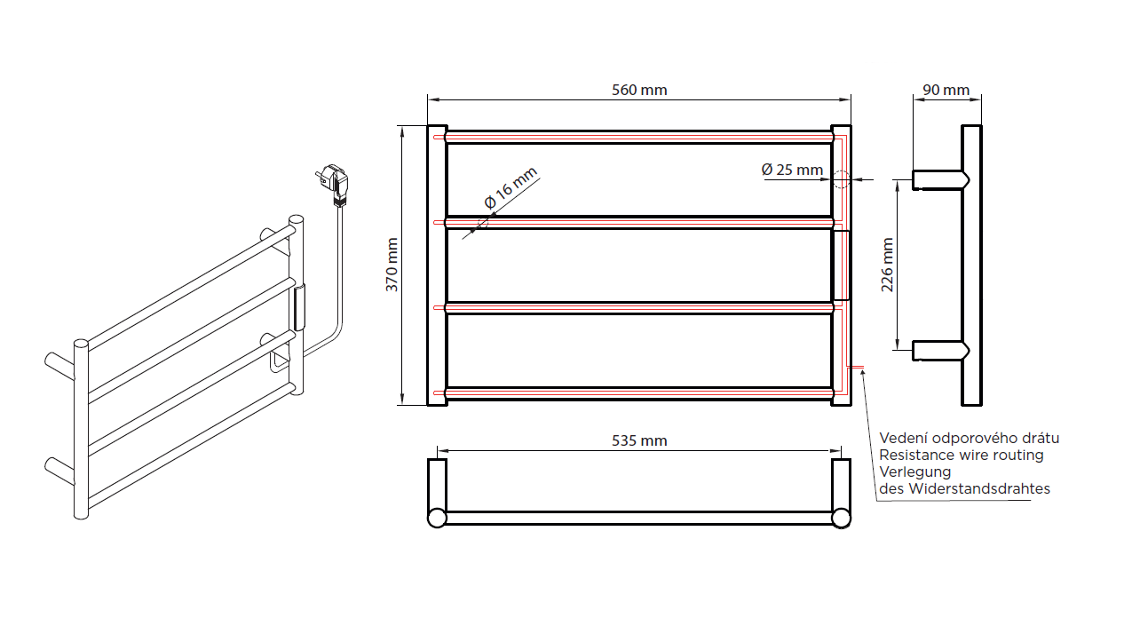 Комплект поставки: полотенцесушитель, электрический кабель.