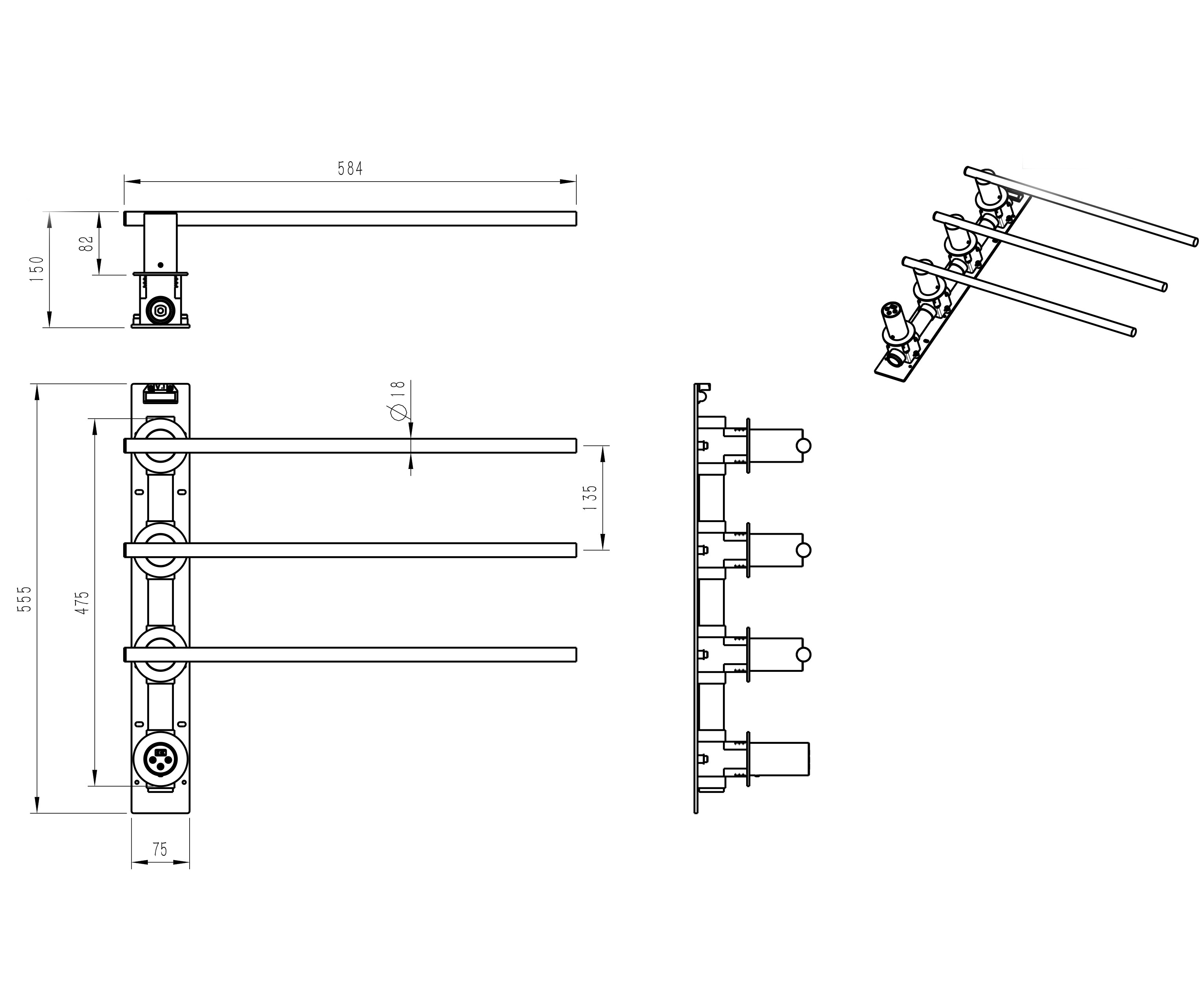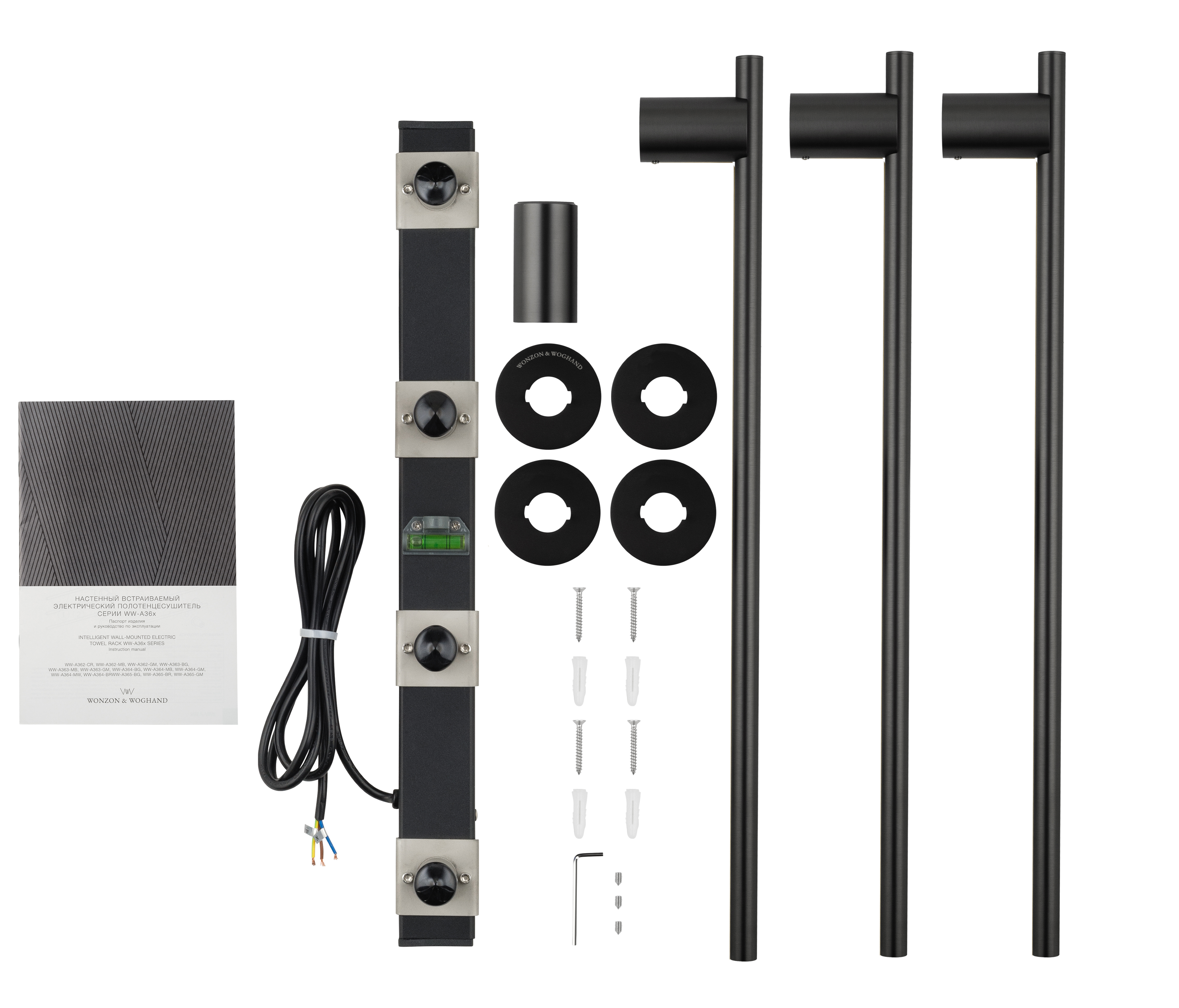 Полотенцесушитель электрический Wonzon & Woghand Dortmund WW-A363-MB встраиваемый черный матовый