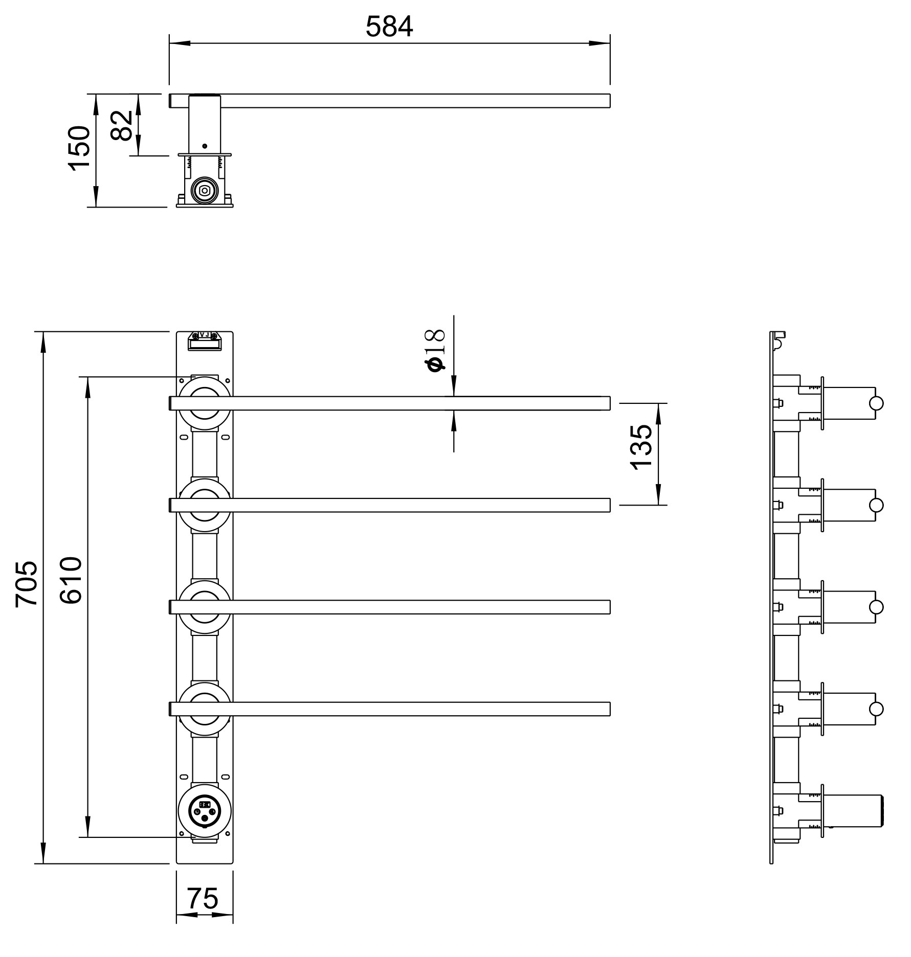 Полотенцесушитель электрический Wonzon & Woghand Dortmund WW-A364-MW встраиваемый белый матовый