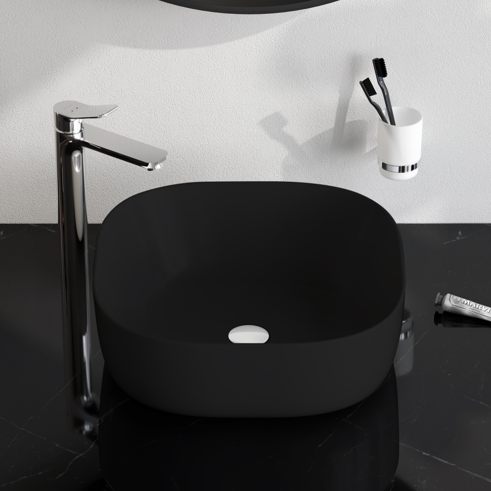 Дизайнерская накладная раковина идеально комбинируется с мебелью и столешницами коллекции Func.