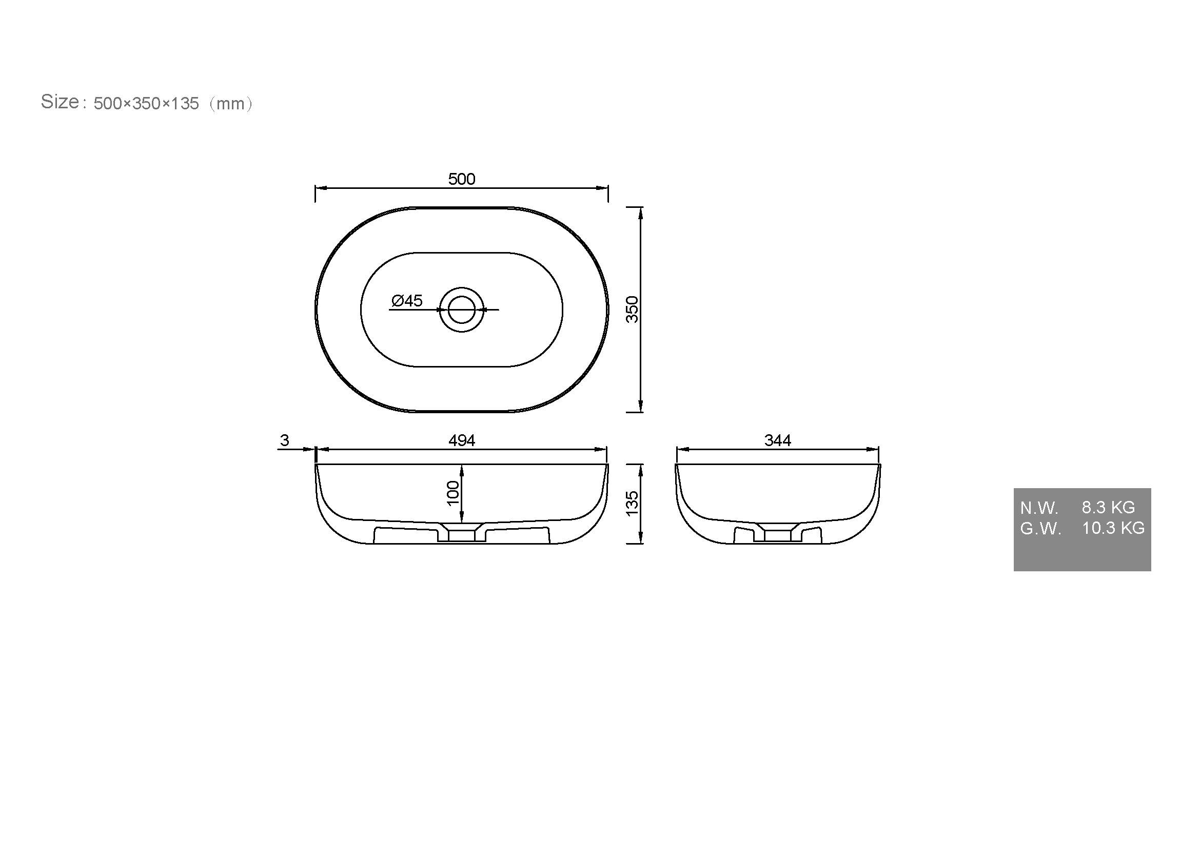 Раковина Armadi Art Slim 50 см 879-50 накладная