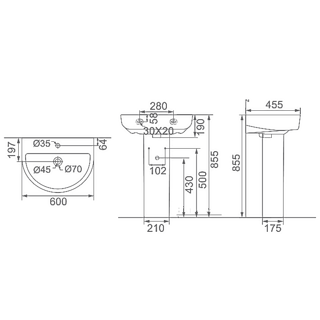 Комплект поставки: раковина, пьедестал, слив-перелив.