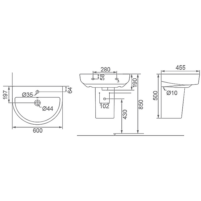 Раковина Creo Ceramique Rennes 60 см RE3000+RE3050 с полупьедесталом