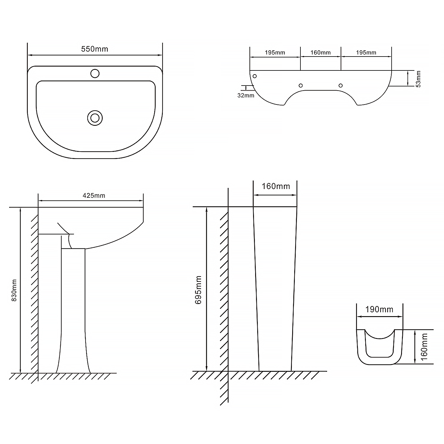 Раковина Loranto Liri 55 см CS-BMP009 с пьедесталом