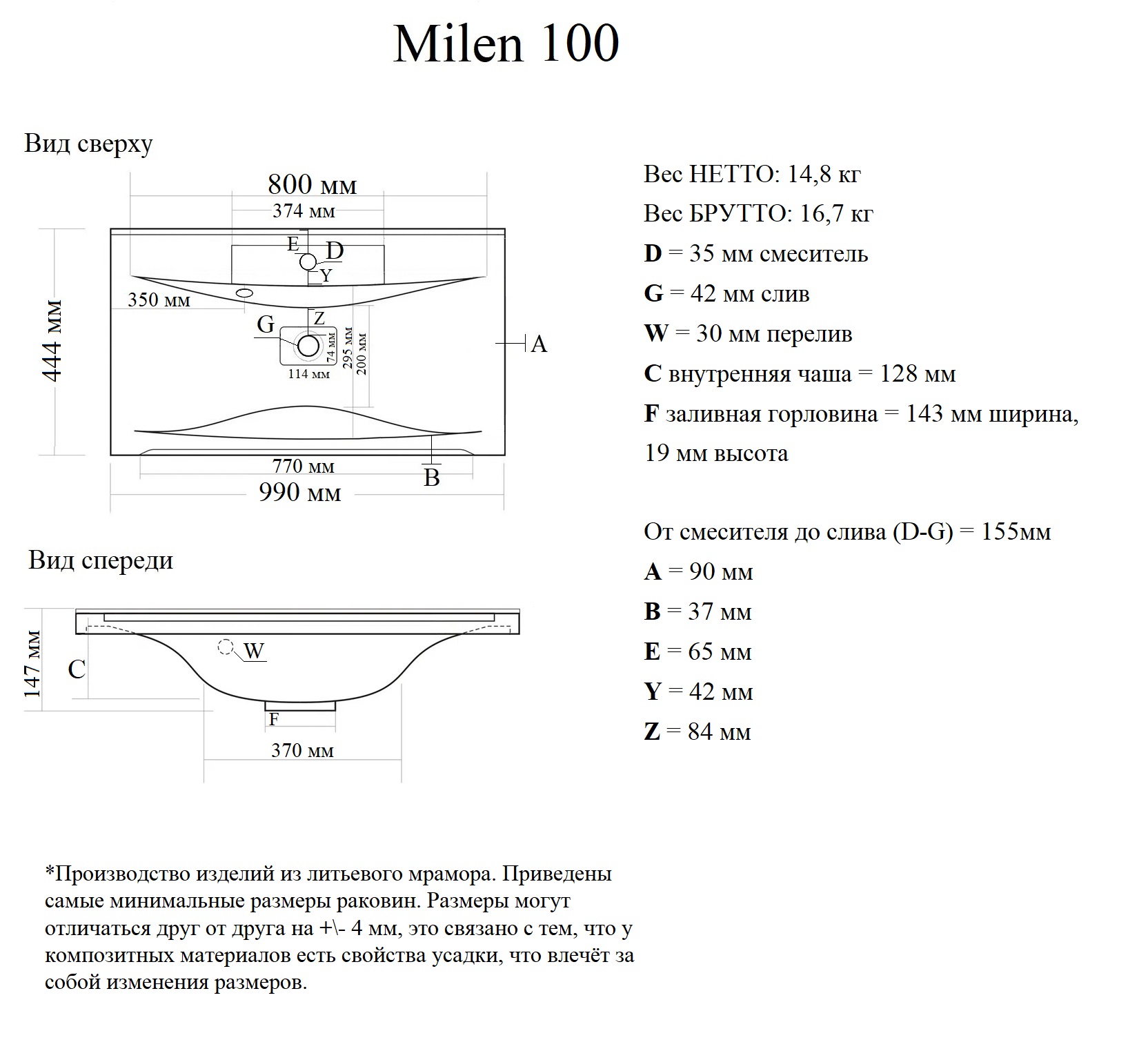 | Крышка перелива | нет |