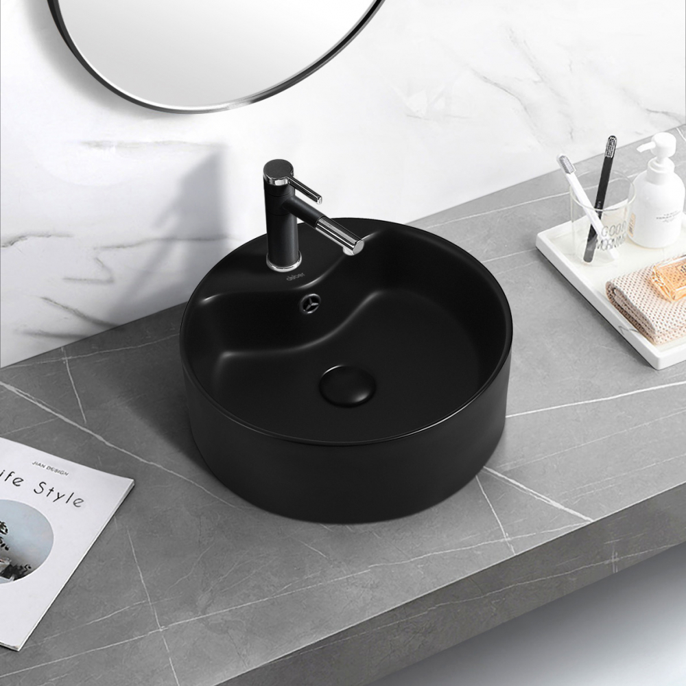 Форма: круглаяМатериал: керамикаЦвет: черный матовыйОтверстие под перелив: естьГабариты: 41 x 14.5 x 41