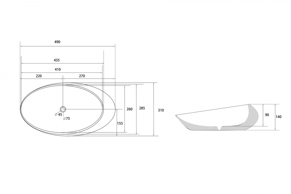 Форма: овальнаяМатериал: санфарфорЦвет: черный матовый/сереброГабариты: 49 x 14 x 31