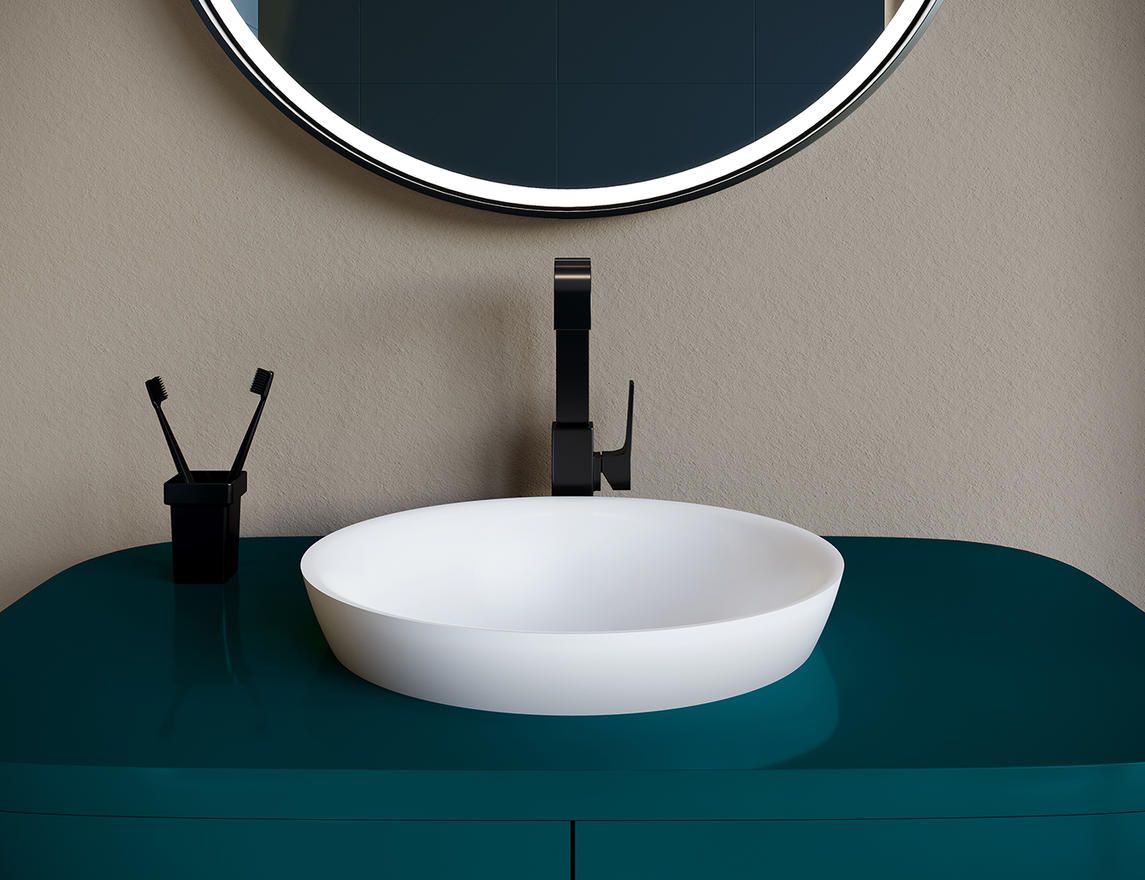 Раковина полувстраиваемая матовая 42x42 см Salini MAREA 1802203M. Раковина MAREA 03 из литого камня от Salini. MAREA 03— компактная овальная раковина из коллекции MAREA.