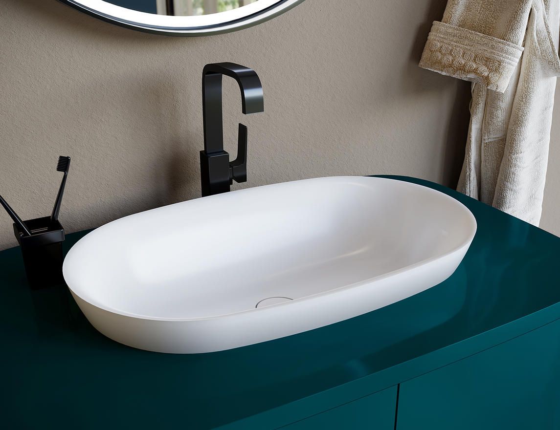 Раковина полувстраиваемая матовая 65x40 см Salini MAREA 1802201M. Раковина MAREA 01 из литого камня от Salini. MAREA 01— компактная овальная раковина из коллекции MAREA.