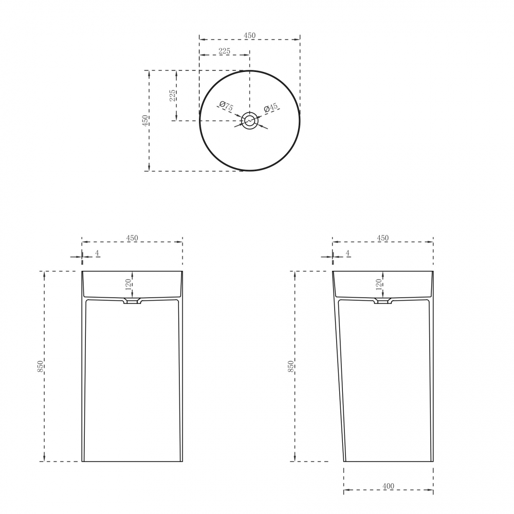 Форма: круглаяМатериал: искусственный каменьЦвет: белый матовыйГабариты: 45 x 85 x 45
