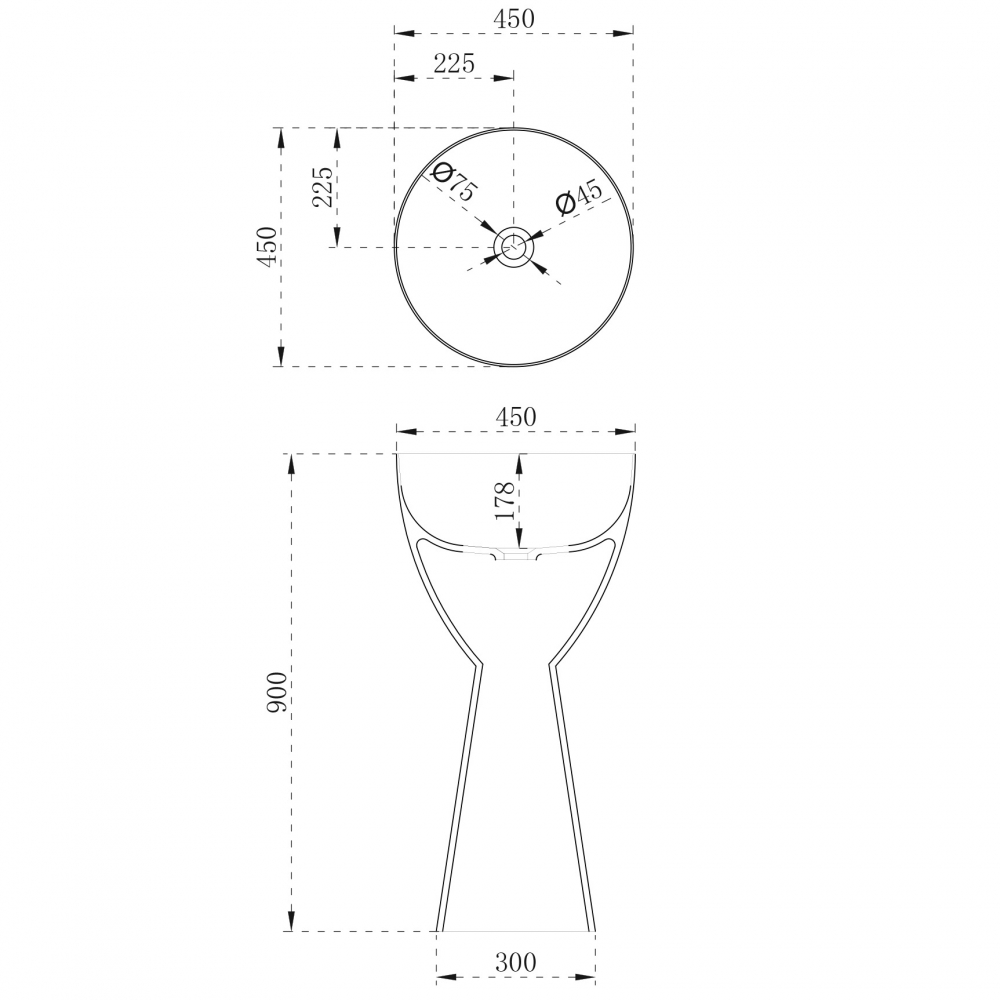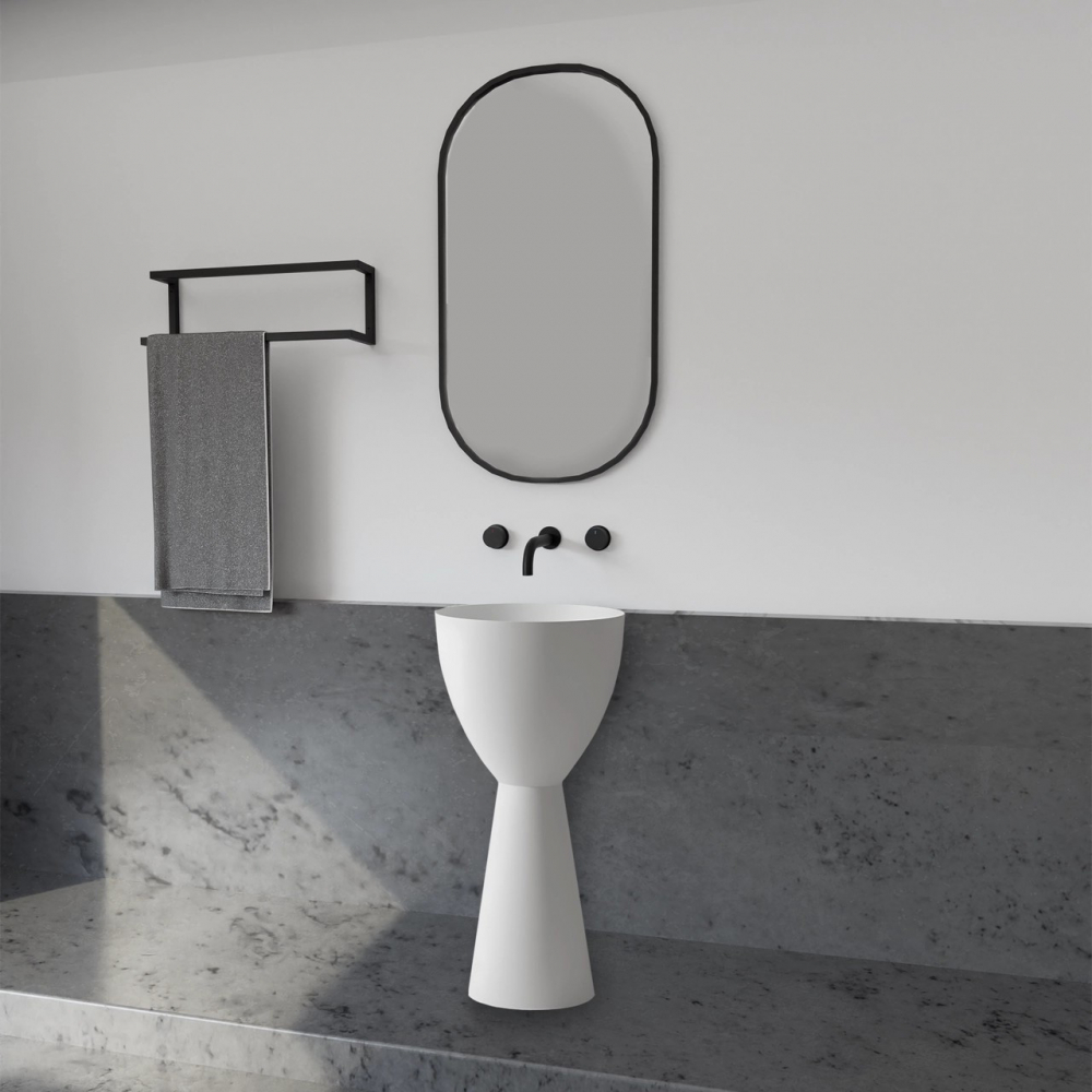 Форма: круглаяМатериал: искусственный каменьЦвет: белый матовыйГабариты: 45 x 90 x 45