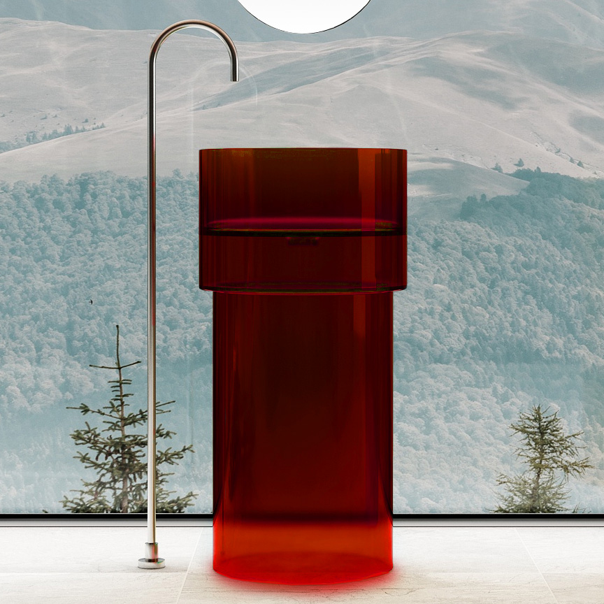 Раковина отдельностоящая прозрачная Abber Kristall AT2701Rubin-H красная