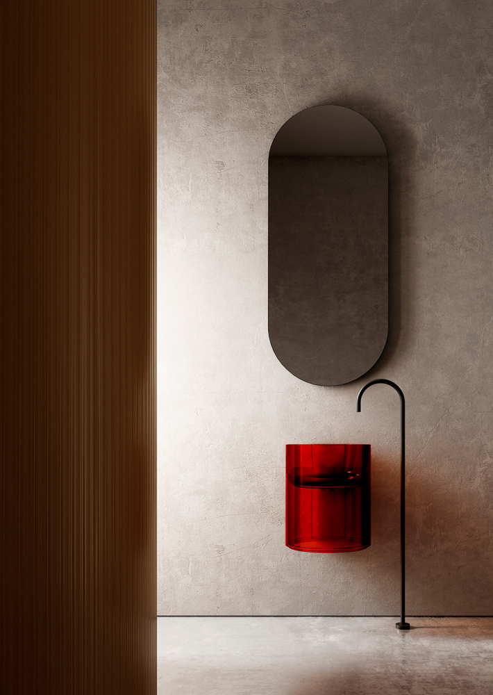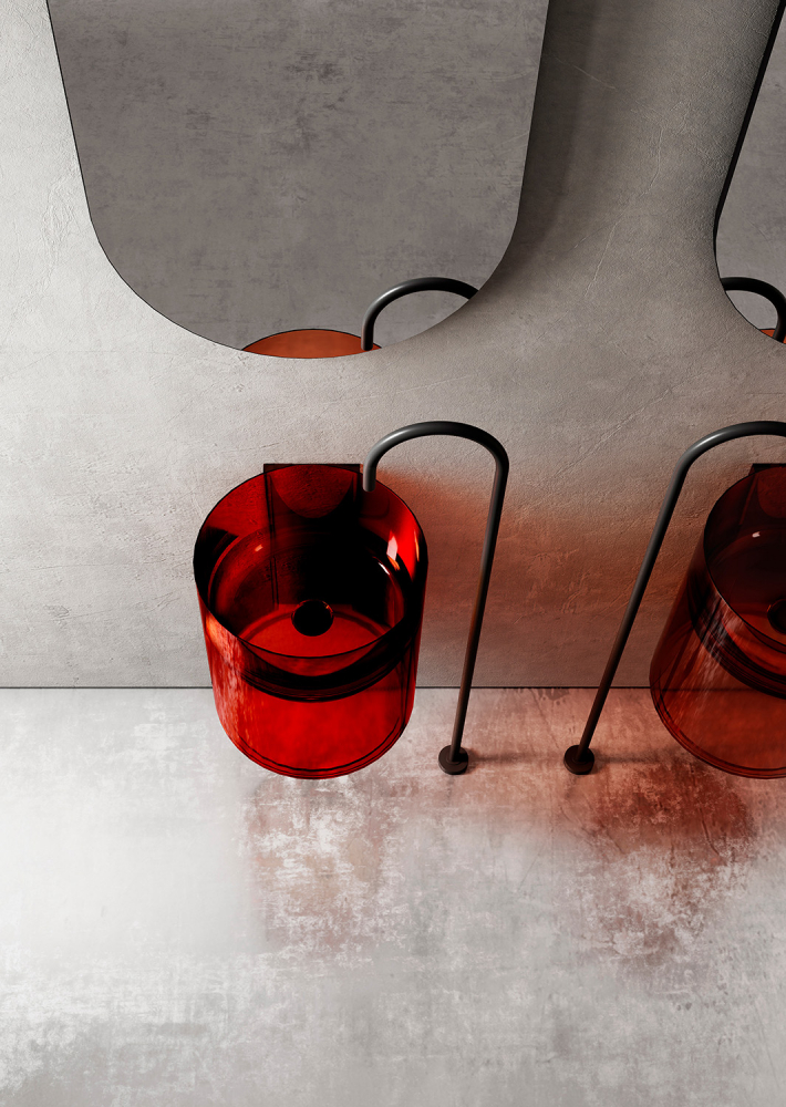 Раковина подвесная прозрачная Abber Kristall AT2704Rubin красная