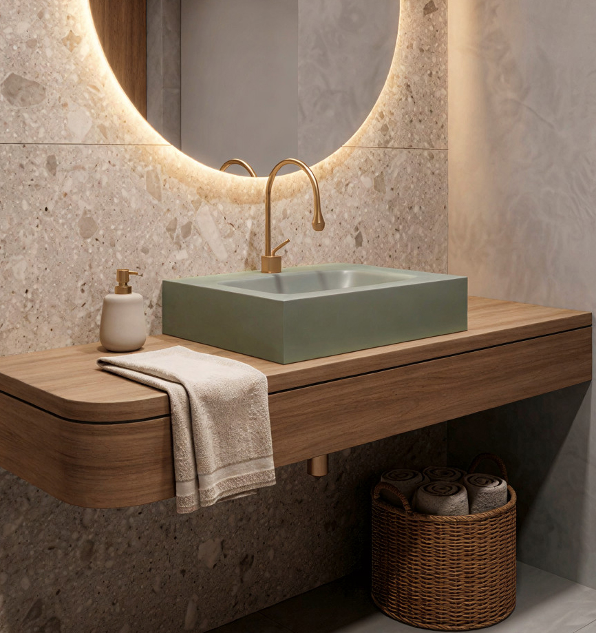 Цельнолитая раковина из высокопрочного керамогранита — без швов, пор и компромиссов. Поверхность плотная, гладкая, устойчивая к влаге, царапинам и перепадам температур.