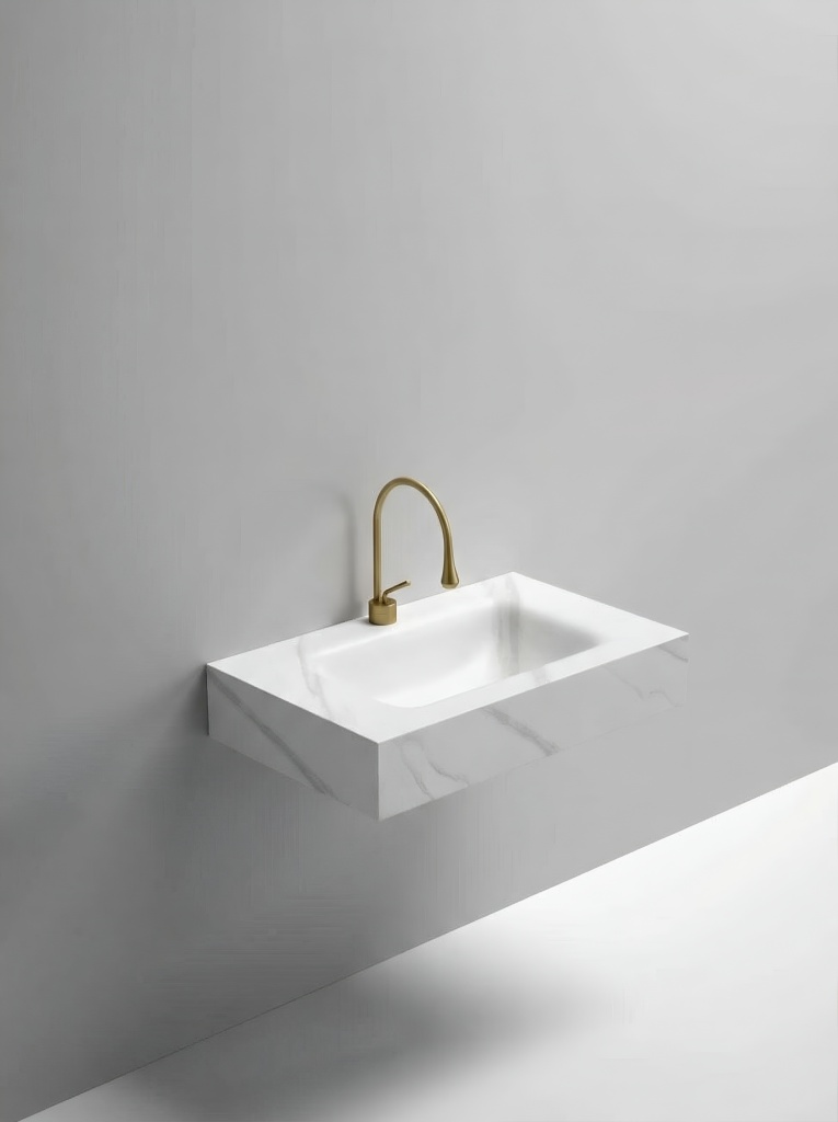 Цельнолитая раковина из высокопрочного керамогранита — без швов, пор и компромиссов. Поверхность плотная, гладкая, устойчивая к влаге, царапинам и перепадам температур.