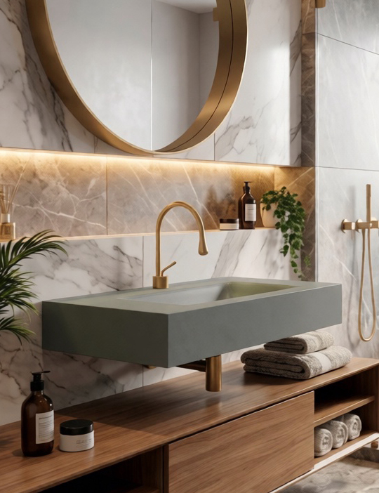 Цельнолитая раковина из высокопрочного керамогранита — без швов, пор и компромиссов. Поверхность плотная, гладкая, устойчивая к влаге, царапинам и перепадам температур.