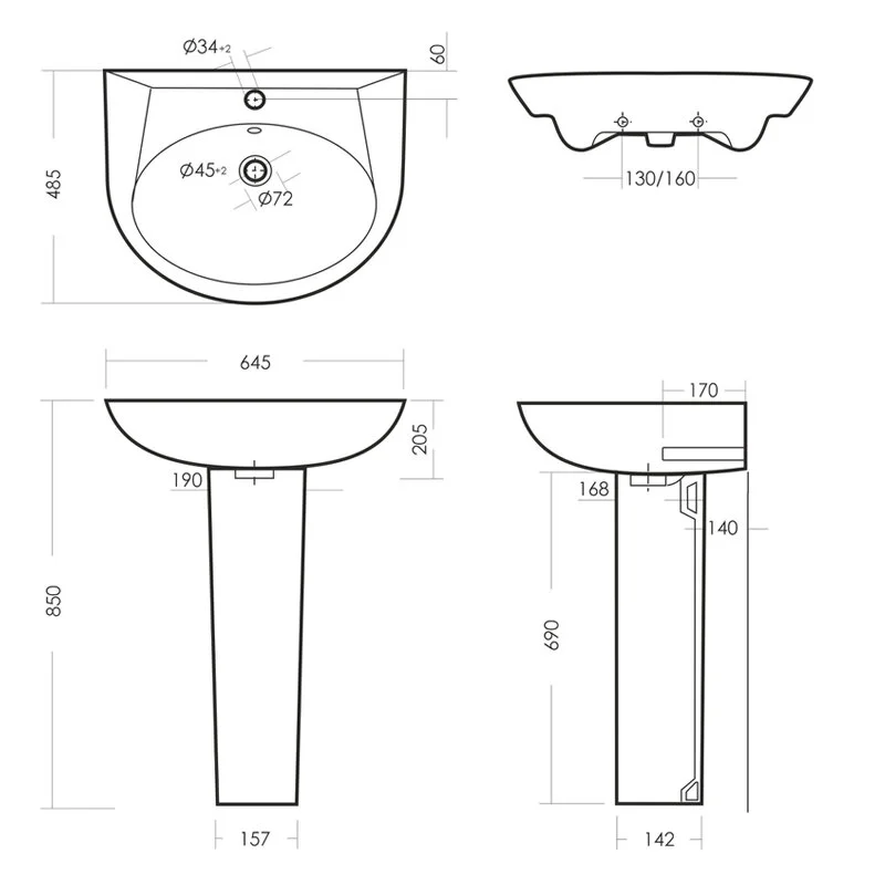 | Вид основания под раковину | пьедестал |