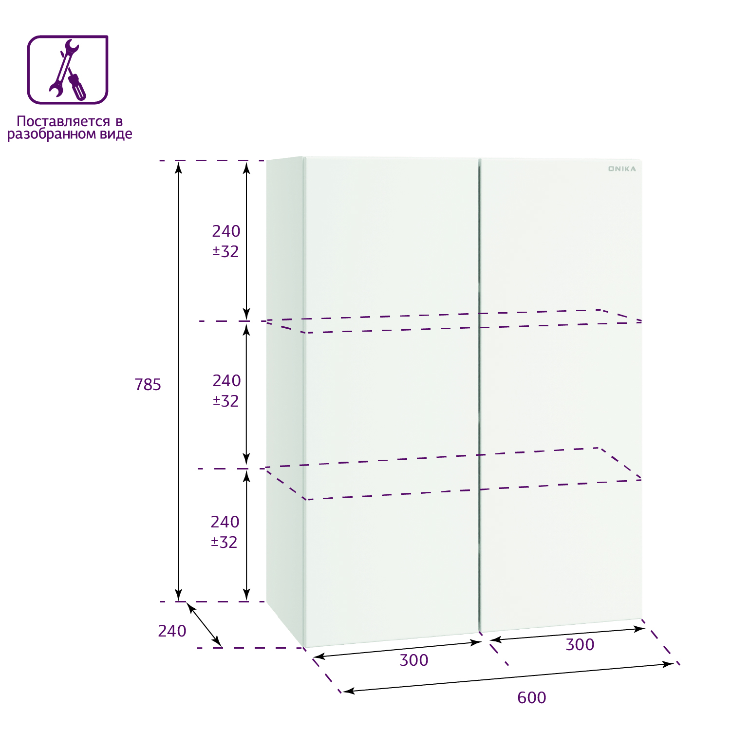 Разборная конструкция облегчает транспортировку, а благодаря понятной инструкции сборка шкафа займёт всего 30 минут.