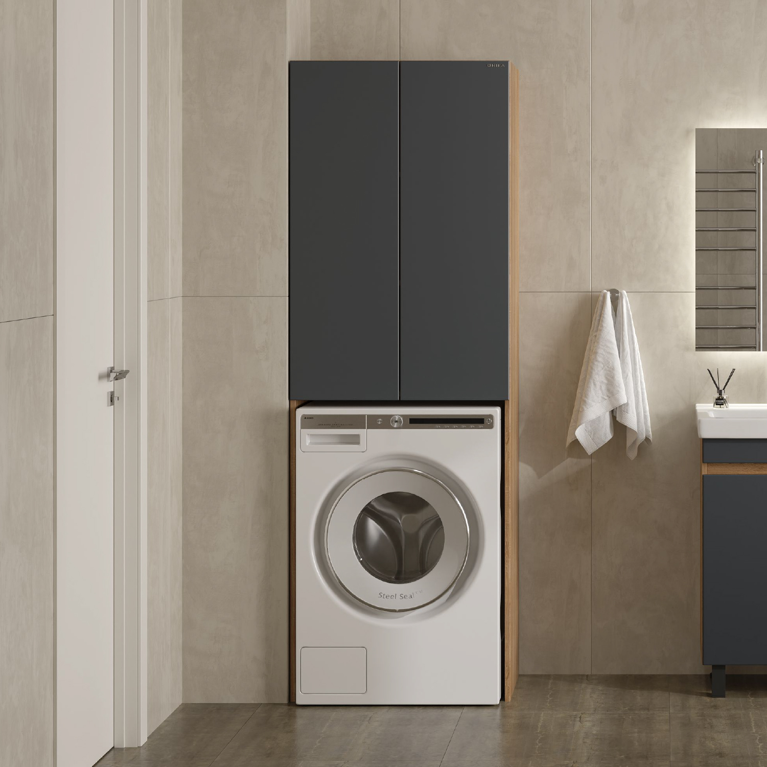 Напольный шкаф Onika Милтон 67, размещаемый над стиральной машиной, является практичным и удобным решением для ванной комнаты, позволяя эффективно использовать пространство, которое обычно остается незадействованным.