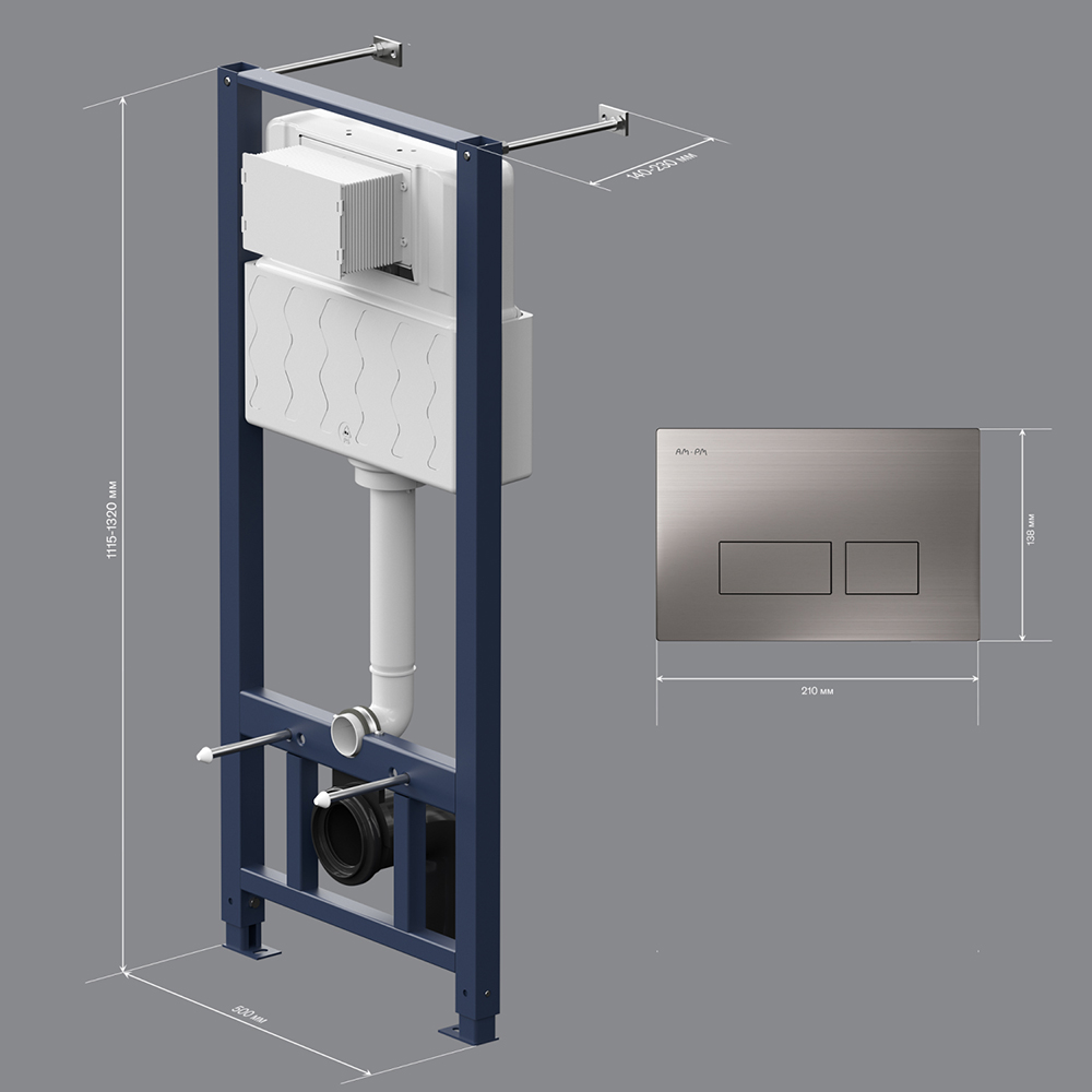 Система инсталляции AM.PM Pro I012704.7031 для унитазов с никелевой матовой кнопкой смыва и шумоизоляцией