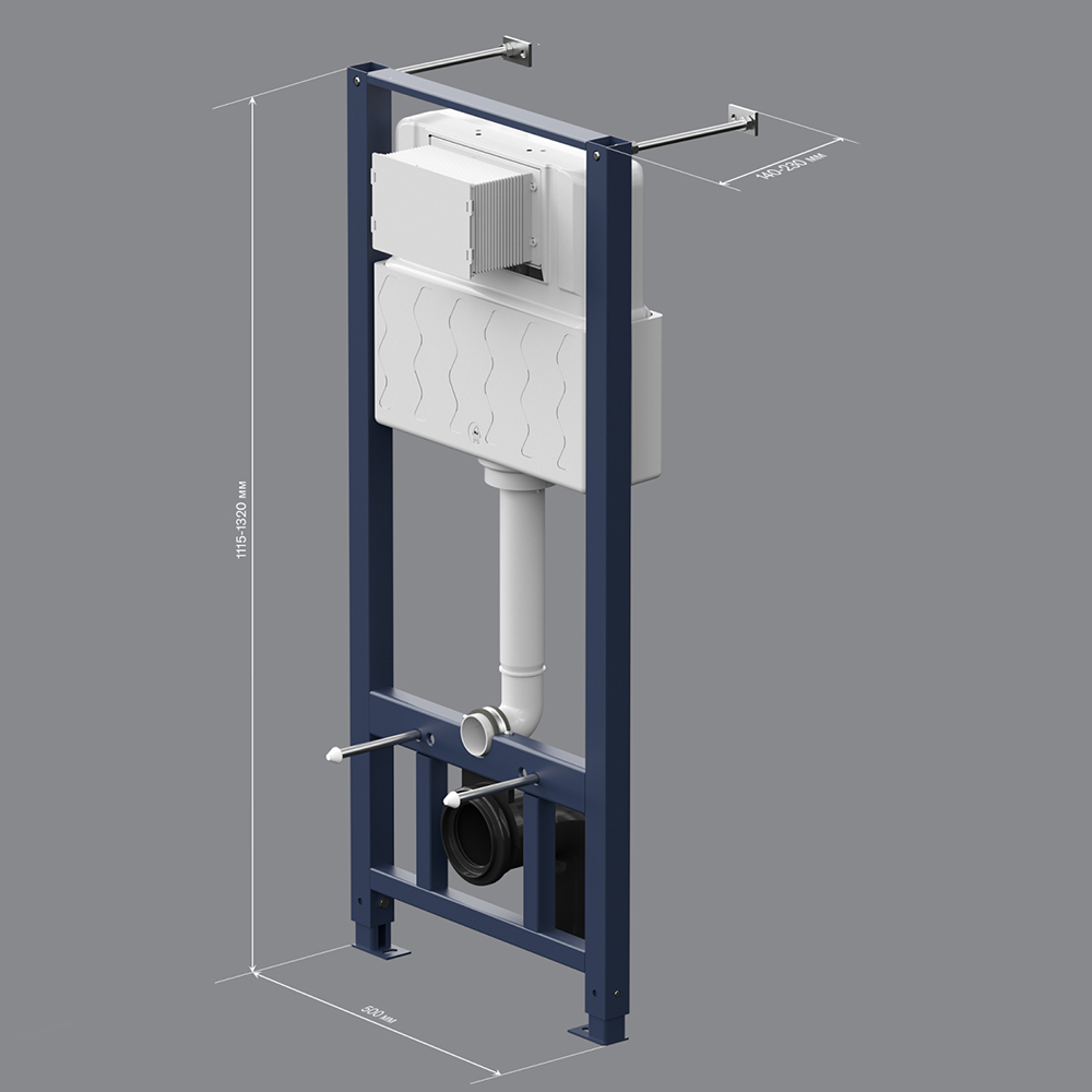 Максимально полная комплектация - все необходимые крепления патрубки звукоизолирующая прокладка в комплекте. Вертикальные ребра жесткости в конструкции рамы – дополнительная опора в месте давления керамики на стену. Благодаря им инсталляция более универсальная и подходит для унитазов любых размеров включая унитазы с небольшой контактной поверхностью. Нет необходимости докупать дополнительные аксессуары для монтажа таких унитазов.