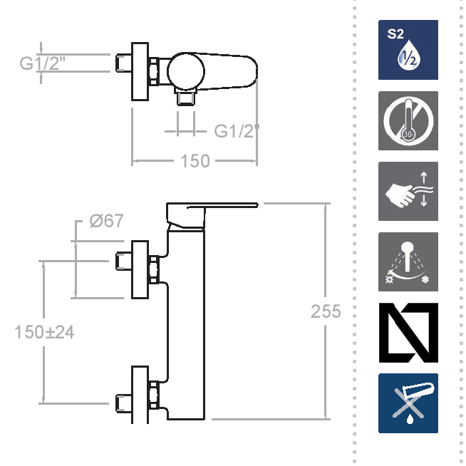 ДВОЙНОЕ ХРОМИРОВАНИЕ - смеситель приобретает свой цвет в процессе присоединения к смесителю частиц хрома под электрическим током, такой вид покрытия обеспечивает высокий срок службы покрытия и высокую износостойкость. SENSIBILITY - смеситель снабжен керамическим картриджем, позволяющим сделать подбор комфортной температуры воды максимально удобным.