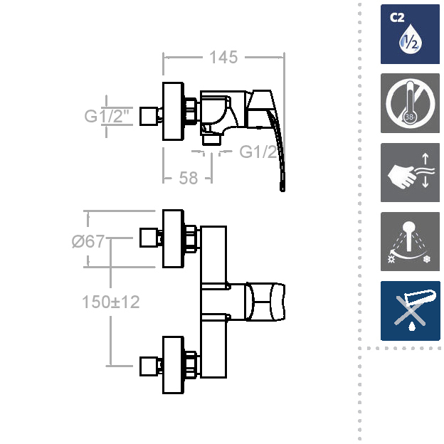 S2/C2 - в смесителе применена система двухступенчатого открытия воды, позволяющая сохранять до 50% излишне потребляемой воды. ГАЛЬВАНИЧЕСКИЙ АНОД - специальная гаечка, которая забирает на себя всю возможную корроззию и увеличивает срок службы смесителя в ТРИ раза. TERMOSTOP BLOCK - внутри смесителя находится настраиваемый механизм, ограничивающий температуру горячей воды, что избавляет пользователя от возможных ожогов. У смесителя настроено заводское значение. COOLTOUCH - поверхность смесителя не меняет температуру от используемой воды, что полностью исключает риск ожога о смеситель. ЭРГОНОМИЧНОСТЬ - дизайн смесителя создан так, чтобы каждый мог воспользоваться смесителем и самостоятельно ощутить весь спектр удобства. SENSIBILITY - смеситель снабжен керамическим картриджем, позволяющим сделать подбор комфортной температуры воды максимально удобным.
