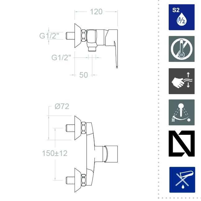 ДВОЙНОЕ ХРОМИРОВАНИЕ - смеситель приобретает свой цвет в процессе присоединения к смесителю частиц хрома под электрическим током, такой вид покрытия обеспечивает высокий срок службы покрытия и высокую износостойкость. S2/C2 - в смесителе применена система двухступенчатого открытия воды, позволяющая сохранять до 50% излишне потребляемой воды. TERMOSTOP BLOCK - внутри смесителя находится настраиваемый механизм, ограничивающий температуру горячей воды, что избавляет пользователя от возможных ожогов. У смесителя настроено заводское значение. COOLTOUCH - поверхность смесителя не меняет температуру от используемой воды, что полностью исключает риск ожога о смеситель. ЭРГОНОМИЧНОСТЬ - дизайн смесителя создан так, чтобы каждый мог воспользоваться смесителем и самостоятельно ощутить весь спектр удобства. SENSIBILITY - смеситель снабжен керамическим картриджем, позволяющим сделать подбор комфортной температуры воды максимально удобным.