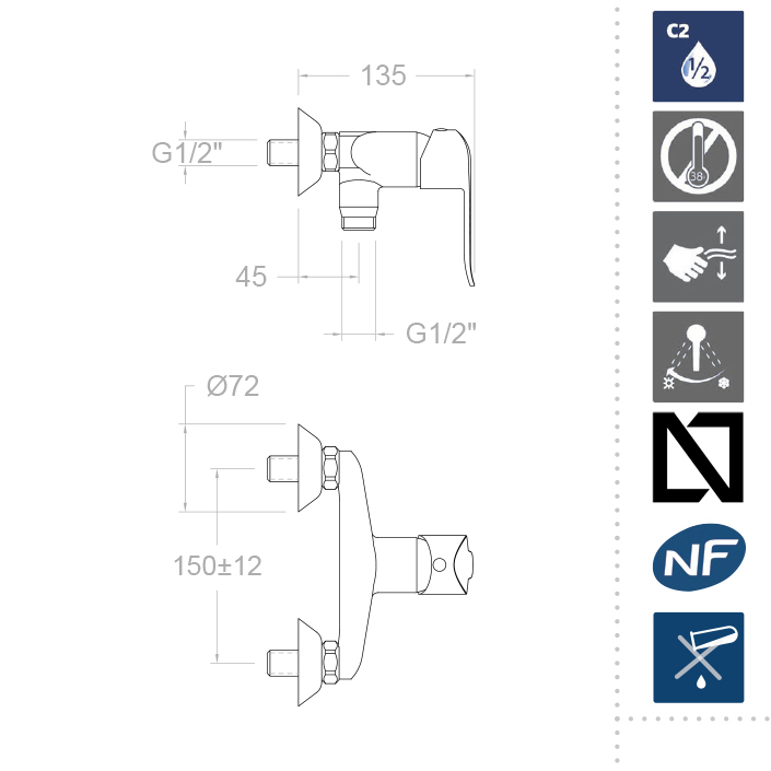 ДВОЙНОЕ ХРОМИРОВАНИЕ - смеситель приобретает свой цвет в процессе присоединения к смесителю частиц хрома под электрическим током, такой вид покрытия обеспечивает высокий срок службы покрытия и высокую износостойкость. S2/C2 - в смесителе применена система двухступенчатого открытия воды, позволяющая сохранять до 50% излишне потребляемой воды. ЭРГОНОМИЧНОСТЬ - дизайн смесителя создан так, чтобы каждый мог воспользоваться смесителем и самостоятельно ощутить весь спектр удобства. TERMOSTOP BLOCK - внутри смесителя находится настраиваемый механизм, ограничивающий температуру горячей воды, что избавляет пользователя от возможных ожогов. У смесителя настроено заводское значение. ЭРГОНОМИЧНОСТЬ - дизайн смесителя создан так, чтобы каждый мог воспользоваться смесителем и самостоятельно ощутить весь спектр удобства. SENSIBILITY - смеситель снабжен керамическим картриджем, позволяющим сделать подбор комфортной температуры воды максимально удобным.