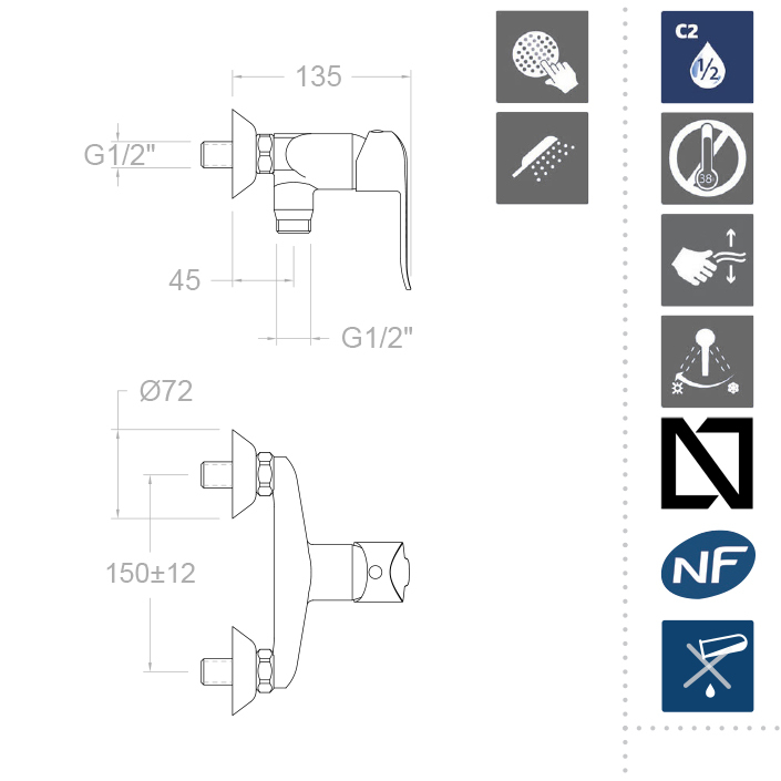 * Водосберегающая система S2 (C2 доступна на некоторых моделях), открывая ручку смесителя в два этапа