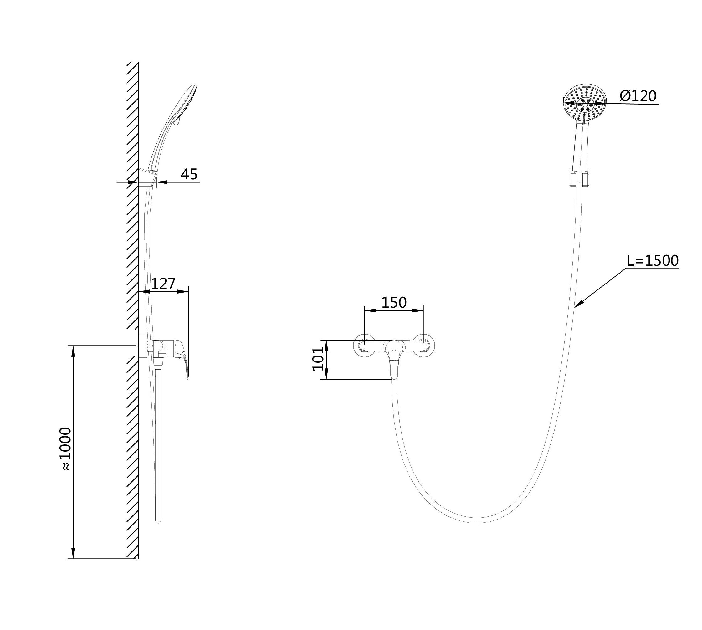 | Оснащение | смеситель / душевой шланг / держатель для душа / душевая лейка / эксцентрики / монтажный комплект |