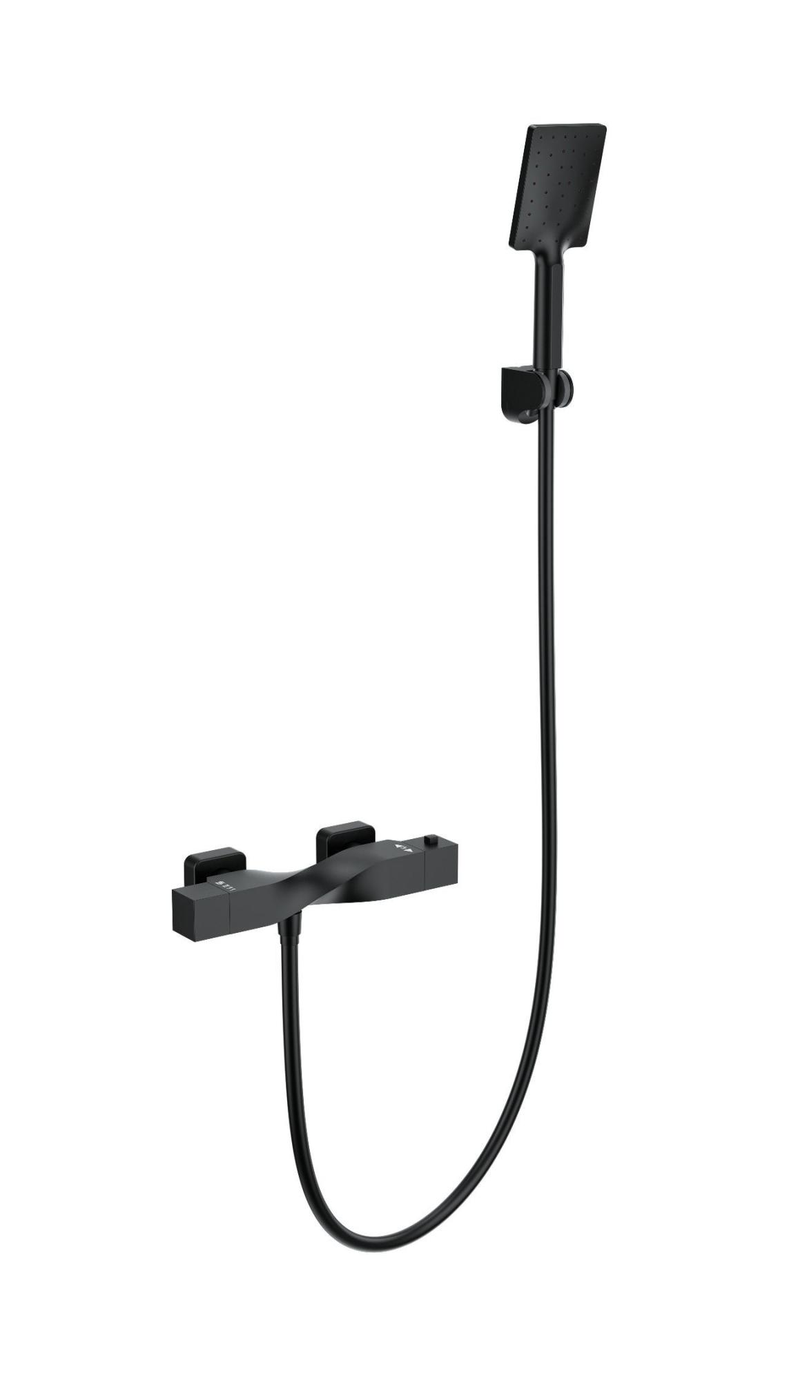 Смеситель для душа с термостатом и гарнитуром Wonzon & Woghand Twist WW-B2025-A-MB черный матовый