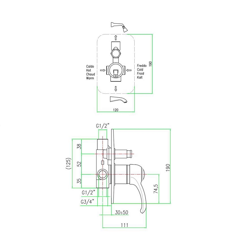 Смеситель для душа встраиваемый Webert Aurora AU860101017 хром с золотом глянцевый
