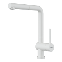 • Практичный однорычажный смеситель выполнен в современном стиле и снабжен высоким поворотным изливом и вытяжным шлангом;