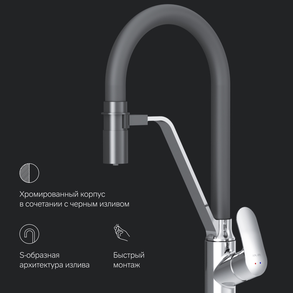 Смеситель для кухонной мойки Am.Pm Like с каналом для фильтра F8007802 черный с хромом матовый