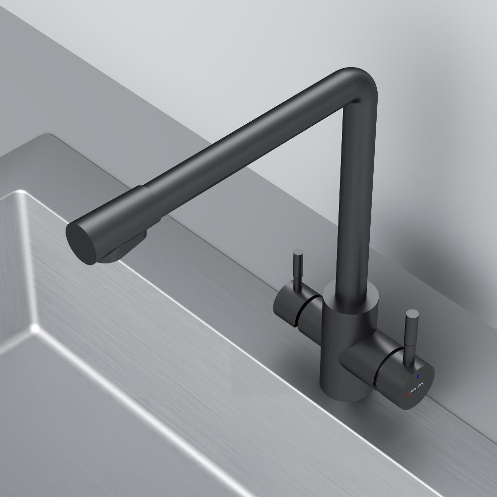 Смеситель оснащен встроенным каналом для питьевой воды. Для получения питьевой воды воспользуйтесь ручкой расположенной с левой стороны корпуса для получения обычной воды просто управляйте смесителем привычным способом.
