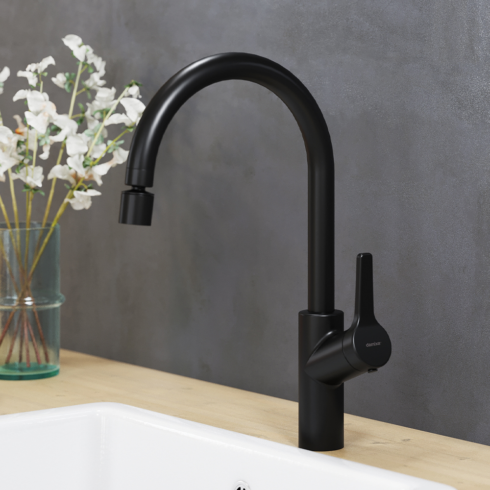 Революционное пополнение серии культовых кухонных смесителей Eclipse - смеситель с двухрежимным регулируемым аэратором в ультрамодном матовом черном исполнении. Современные формы и качественные материалы которые станут идеальным завершением как классической так и современной кухни. Невероятная простота управления: керамический картридж Light Flow обеспечивает плавное управление ручкой смесителя и оптимальную регулировку температуры и мощности потока. Безупречный внешний вид: невероятно тактильное покрытие Soft touch имеет благородный матовый блеск. Благодаря усиленным защитным свойствам глубокий черный цвет не стирается и не тускнеет. Два режима подачи воды для максимального удобства использования: струя и душ. Переключение режимов осуществляется путем вращения кольца излива. Экономия ресурса: уникальная разработка Damixa аэратор EcoSave насыщает струю воды воздухом что позволяет сократить расход практически в два раза. Длительная гарантия: продукт прослужит вам минимум 10 лет